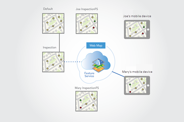 With this option, a replica version is generated for each user who downloads a map containing an editable feature service. For example, if 10 users download the same map, 10 replica versions are generated. Each replica version is specific to an individual user, and the replica version name is composed of the user name and service name (for example, Joe_InspectionFS). If a user downloads the map multiple times (for example, from more than one device), the same replica version is used when the user synchronizes from each device. Any one device has access to edits from the other devices. However, newly downloaded maps will only be as up to date as the last time the user's replica version was reconciled. A user's replica version remains as long as the user has a map downloaded.